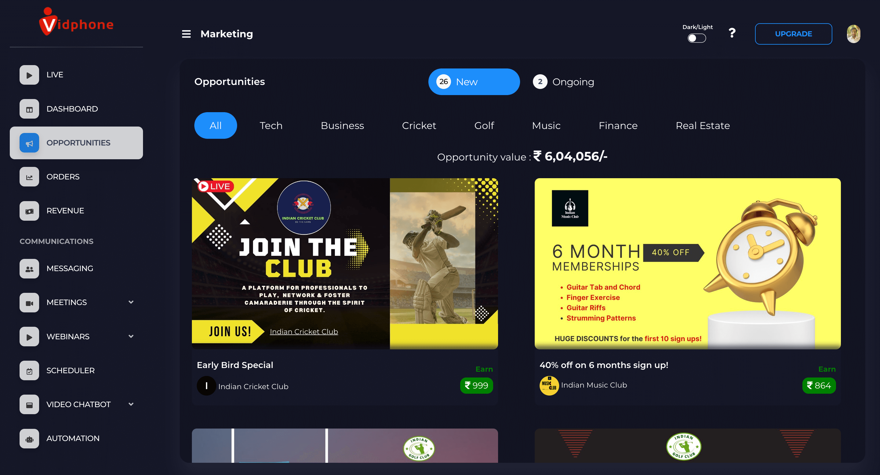 Access referral links for top-selling products and services from the dashboard.